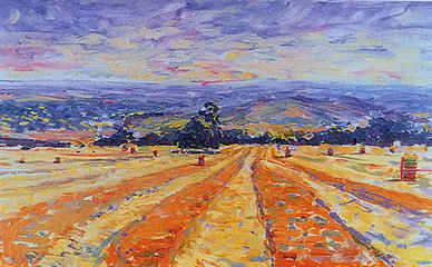 西方透视画法。油画:干草田,画家:克里斯多夫·贝克