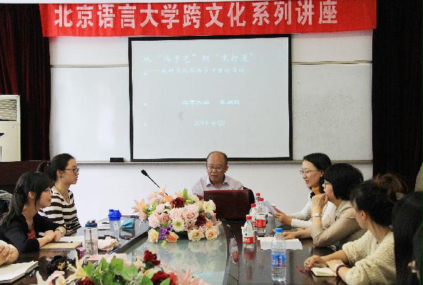 2014年4月29日,由校宣传部、人文学院比较文学研究所共同主办的“跨文化系列讲座第五十三讲”在教四楼320会议室举行。本场讲座主题为《钱钟书比较诗学方法论例说》,由北京大学中文系系主任、中国比较文学学会副会长兼秘书长陈跃红教授主讲。我校人文学院比较文学研究所副所长陈戎女老师主持了此次讲座,钱婉约、赵冬梅、刘丹、齐一鸣等老师出席讲座。