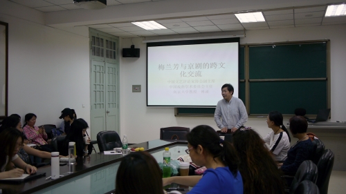 2018年5月11日下午,南京大学、中国戏曲学院傅谨教授应邀前来北语,进行了题为“梅兰芳与京剧的跨文化交流”的讲座,本次讲座系北语比较文学研究所举办的跨文化系列讲座第89讲,由陈戎女教授主持。整场讲座内容大致分为三个层次:第一,介绍梅兰芳在1949年之前四次出访的情况。第二,分析戏剧与跨文化交流的动机。第三,阐述文化交流的果实。三个部分环环相扣,层层推进,不仅使听众对梅兰芳的海外出访有了更为深入的认知,也引发大家对于京剧文化以及跨文化交流的更多思考。
