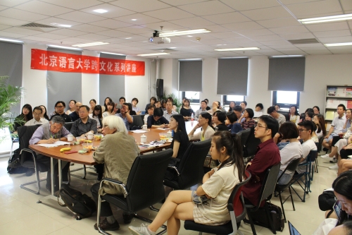 随后,刘建辉教授与到场的清华大学王中忱教授、北京市社会科学院张泉研究员、北京外国语大学的秦刚教授和主持人周阅教授针对讲座内容进行了讨论,交换了彼此的看法,在思想的碰撞和交流中引发了大家更多的思考。整场讲座座无虚席,最后在大家热烈地掌声中圆满结束。出席讲座的还有北语比较文学研究所所长陈戎女教授、人文学院院长钱婉约教授等。